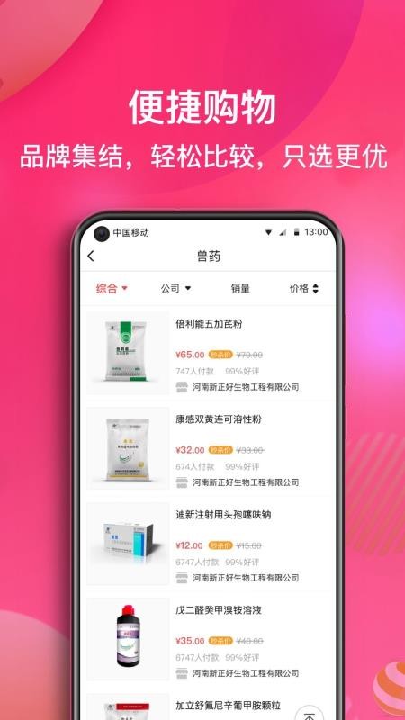 好兽药app是一个专注于出售动物药品的购物平台,能够出售的药品品类非常丰富,当你家的宠物出现身体不适的时候就可以在这个平台上买要来进行治疗,你可以先买一些常用的药品放家里备用,这里的药品种类非常丰富,能够提供的各种家庭常用的动物药品。