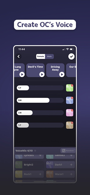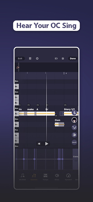 1、以 “OC 声线定制 + 3D 形象创作 + AI 歌曲合成” 为核心的移动音乐创作工具,主打角色专属演唱与可视化输出,区别于通用录音 / 编曲软件,强绑定 OC 创作与 IP 同人场景。