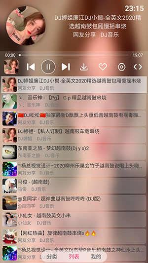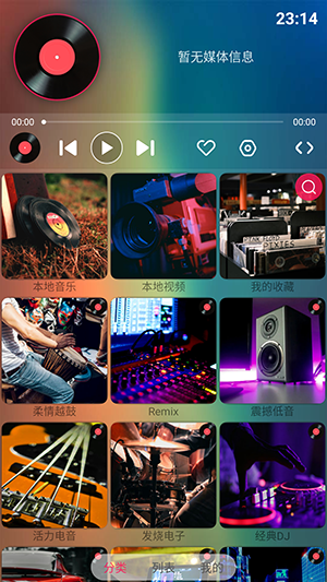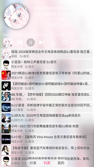 2、合并播放界面与列表界面,操作极简,视觉动感符合电子舞曲风格。