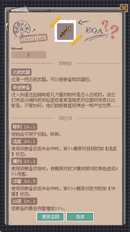 特色神器系统:神器自带独特属性或特殊效果,如【贪食背包】增背包空间但随机吃食物、【无名之剑】随命名变属性等,为游戏增添策略趣味与收藏价值;