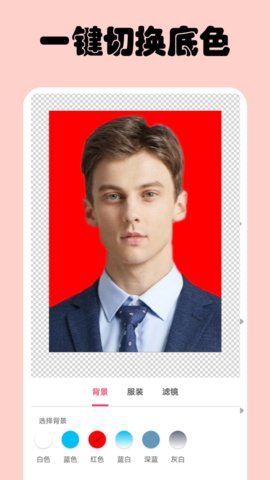 提供红底、白底以及蓝底等多种底色,方便用户进行一键换底更换证件照底色;