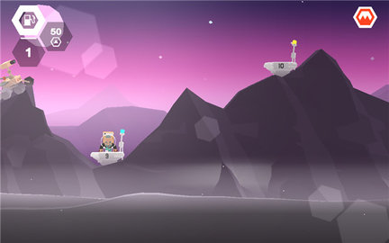 地形应对策略:火星的地形复杂,有很多凹凸起伏的山丘,平台之间的距离看似不远,似乎很容易飞过去,但实际上要把握好力度并非易事。一旦高低差距拉开,就很容易出现坠毁的情况。不过好在游戏可以一直从上一个平台复活,不用担心存档问题,玩家可以多次尝试,总结经验。