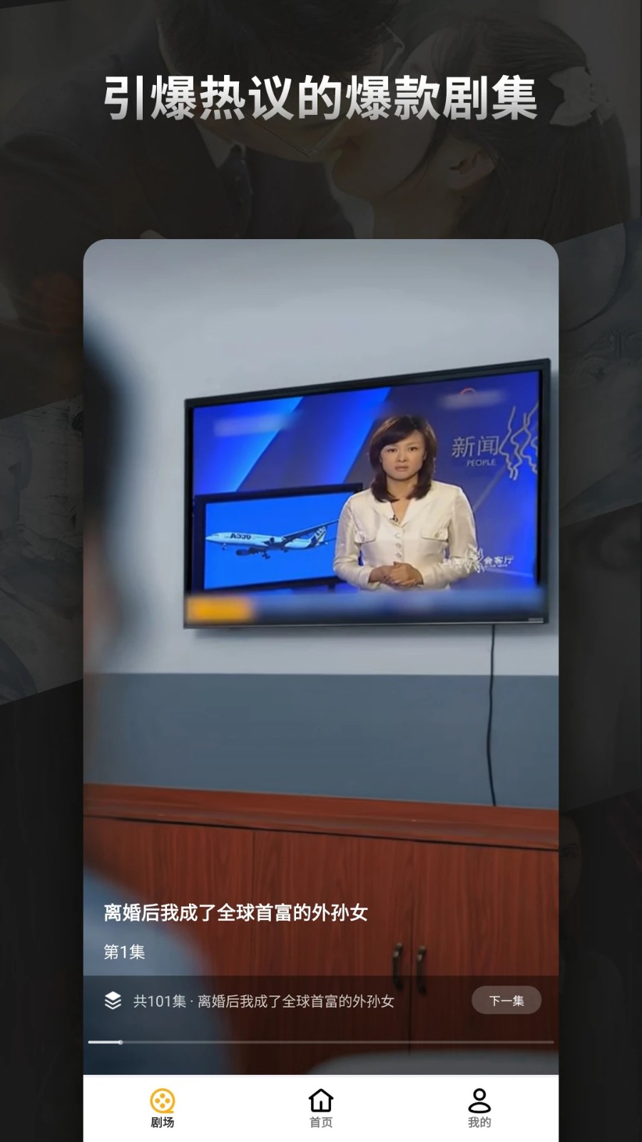 3、进入剧场页面,可以观看优质短剧,下滑轻松切换视频。