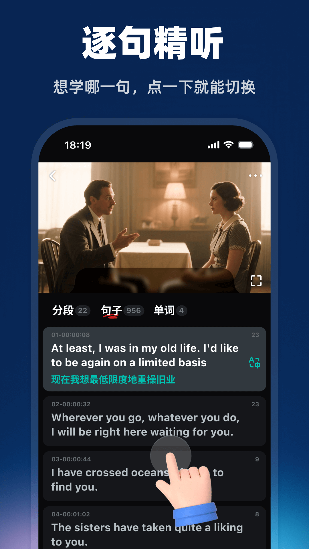 3、提供字幕遮挡模式,鼓励用户先听后看,有效训练盲听能力,实现“听-学-练”三步学习闭环。