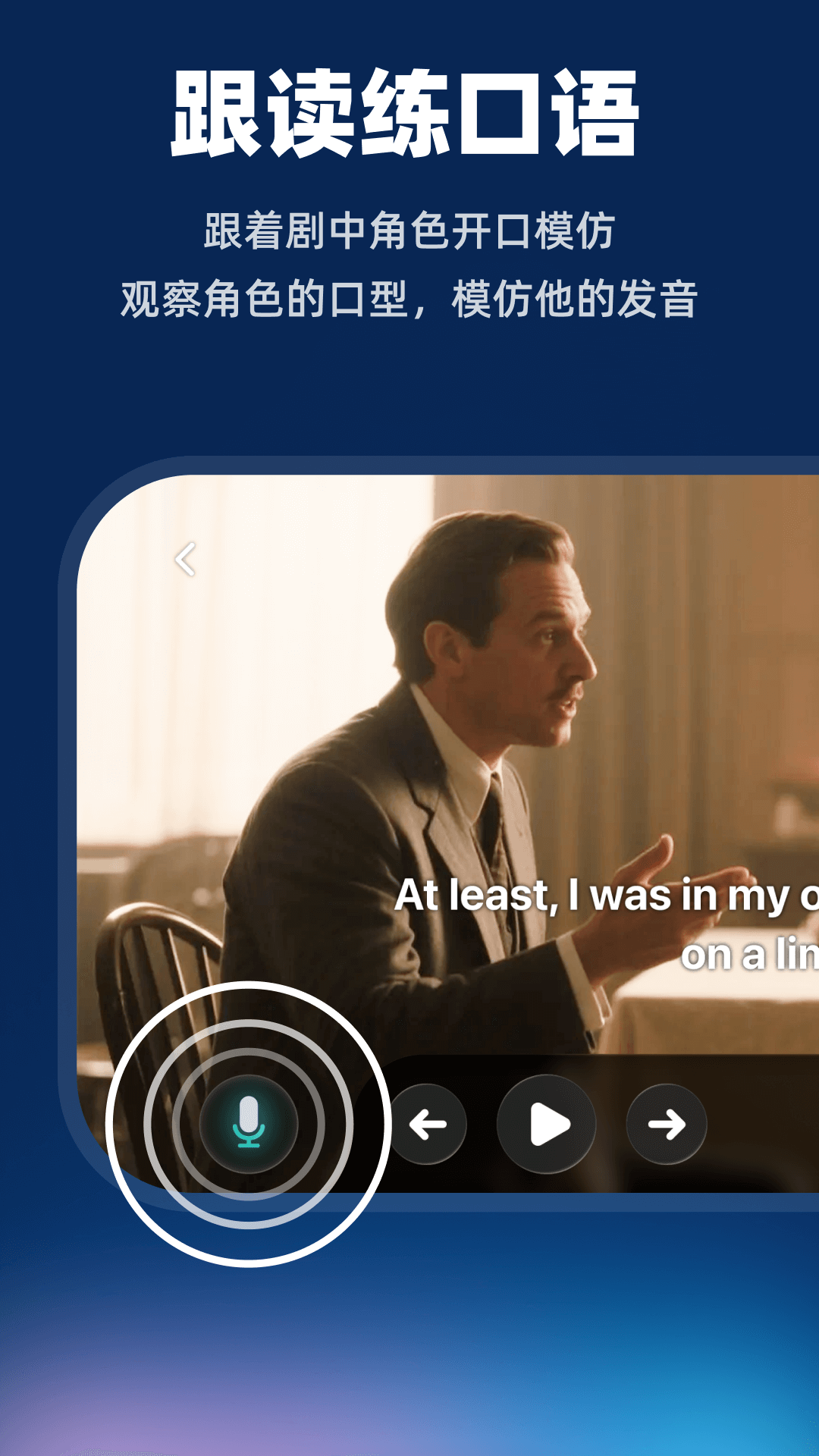 1、将经典美剧按单句切分并支持循环播放,用户可逐句精听、跟读并即时打分,提升听力训练效率。