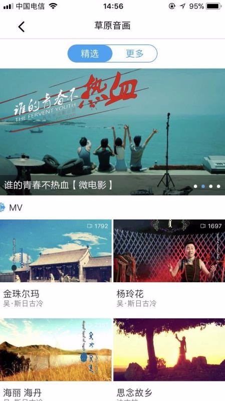 1、草原音画,查看诸多的MV、微电影,了解草原风情;