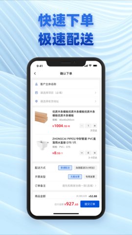 快速下单,对于下单信息办理时进行实时核验,提供实时下单的服务功能并在下单时选择到满意的建材。