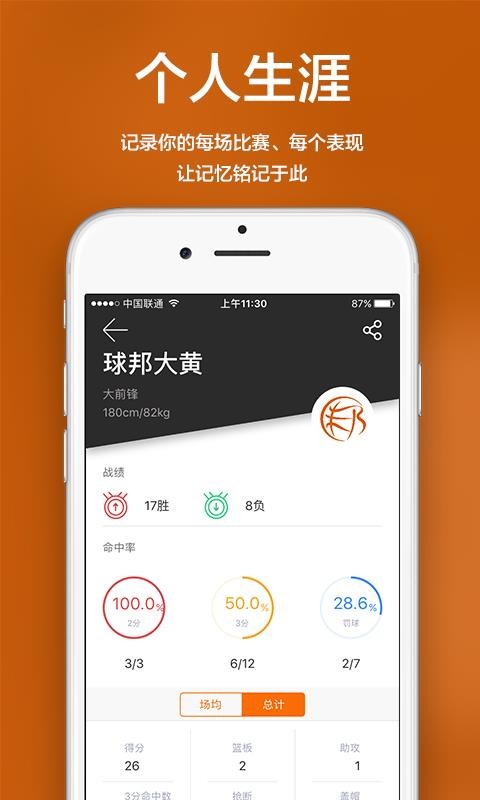 数据生涯,用每个数据记录你的篮球生涯,让你享受NBA级别的数据统计服务;