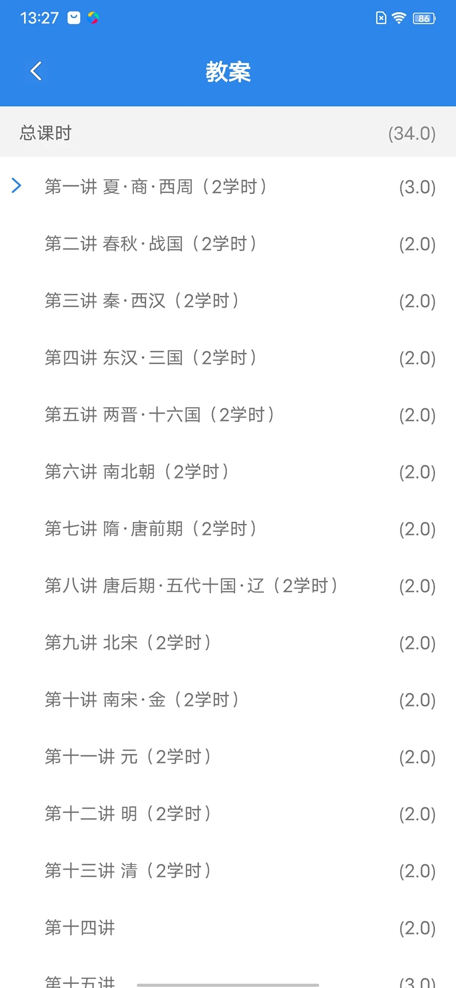 1.进入应用,能够查看到全部的教学内容