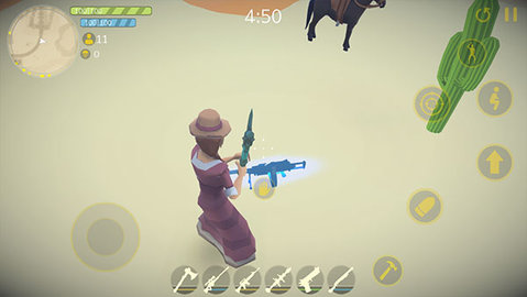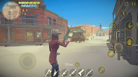 3、红色西部皇家游戏采用虚拟摇杆加触摸式设计,左边虚拟摇杆控制移动,右边点触式则操控玩家跳跃、蹲伏、射击等。