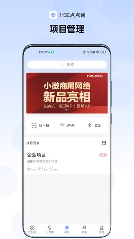 H3C点点通APP是针对H3C小微商业产品配合使用的一款APP,可提供售前产品库、出方案,售中项目开局、远程运维,售后智能客服、备件直通车三大能力