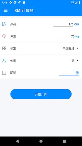 6、bmi计算器支持中国标准,日本标准,新加坡标准,亚洲标准和国际标准。