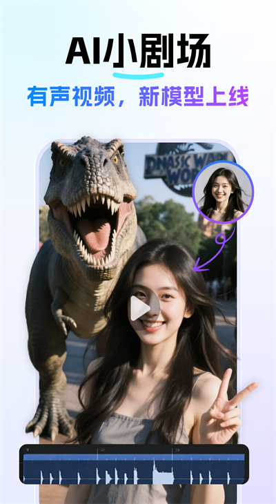 3、智能剪辑、AI绘图功能,智能匹配画面、节奏与转场,同时支持静态照片跳舞、照片唱歌,一键生成趣味特效成片。