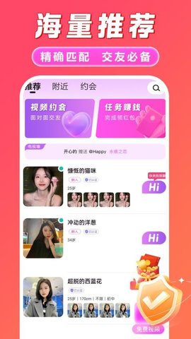 本地觅欢APP是一款集多种互动方式于一体的真人交友软件,在这里,主要包含了语音聊天、视频通话、文字互动等多种有趣的聊天方式,能够满足多种场景下的聊天需求,让用户与他人聊天互动不再受到环境的影响,从而高效提升彼此之间的聊天氛围,提升线上交友的趣味性;而且软件中还拥有多重认证流程,通过在线上传身份证件实名认证身份信息,致力于为用户打造安全、靠谱且真实的交友环境,以便用户高效遇见真实可靠的有缘人,享受全新的交友体验;除此之外,本地觅欢官方版还可以支持用户随时随地发布精彩的动态,分享日常生活,高效邂逅有趣的朋友。