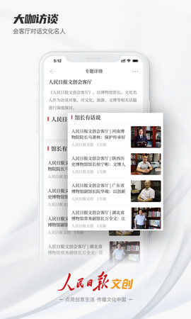 人民日报文创app是人民日报打造,为用户带来更多的文创内容,许多的文化资讯都可以在软件自分钟获得,还有许多的文化大咖的访谈可以随时观看,帮助用户更加轻松的了解中国文化。