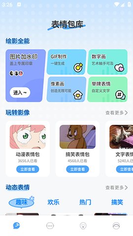 海量表情素材库:覆盖静态、动态表情包,分类齐全,热门搞笑、动漫可爱等风格一键获取,聊天不冷场。