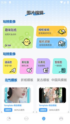 全能图片编辑:修图、滤镜、拼图、贴纸、抠图、漫画脸等功能一应俱全,满足创意修图需求。