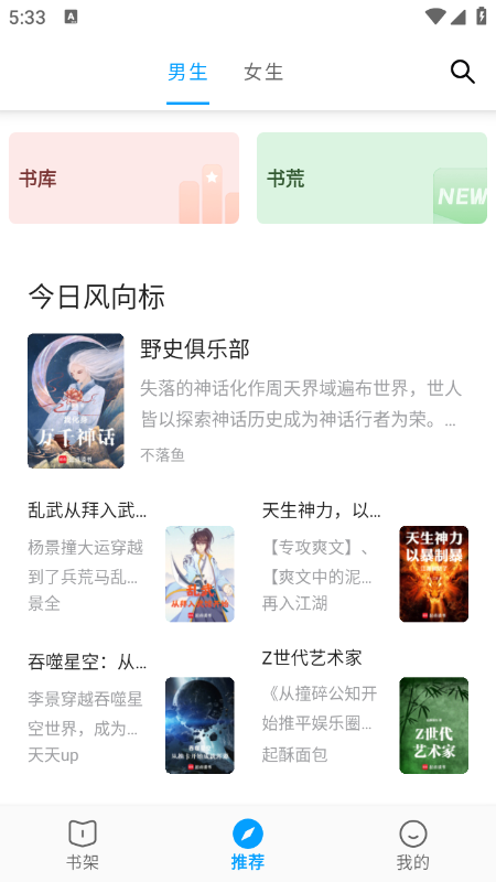 2.在书库,推荐等列表中自由浏览,找到感兴趣的小说;
