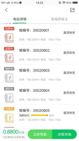点击页面中间的充电按钮,即可查看充电数据或连接相应的充电桩