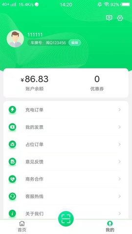 在我的页面,用户可以查看充电的订单、在线客服、常见问题等