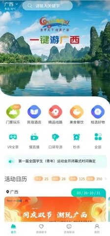 广西旅行期间,可以通过“一键游广西”享受到便捷的服务,如在线购票、预订餐厅等。