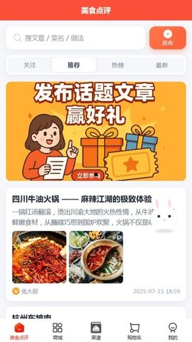 用户随时都能在线分享自己的菜谱以及美食点评内容,随时可以在线分享互动;
