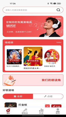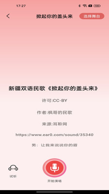 提供歌词显示、原声试听功能,跟随原唱来进行,降低唱歌门槛。