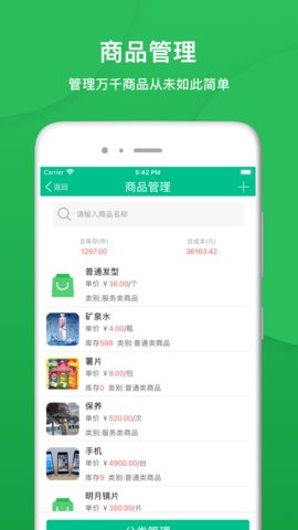 商品管理:商品扫码录入,自定义商品属性,商品套餐灵活按需设置,商品智能补货提醒,商品管理更轻松。