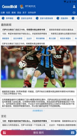 看球升级 明星零距离融合升级直播技术与社区技术,邀请全球顶级球星与广大球迷近距离看球、聊球。球迷可与世界级球星多人同屏,实时观看各大联赛,还能与球星在线比拼猜球,增加看球乐趣。同时,在GoodBall好球网的球迷社区中,支持自己喜欢的球队,还有机会领取各类红包福利,提升用户参与感。