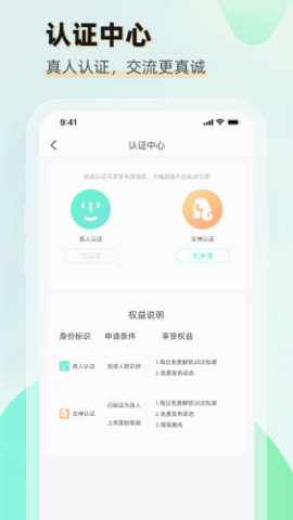 软件会对用户的信息进行AI认证+人工认证,营造真实的交友环境。