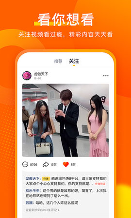根据你的观看喜好,个性化推送你可能喜欢的视频内容,不断优化推荐算法,让你总能刷到感兴趣的作品。