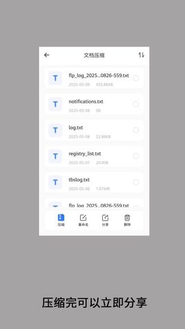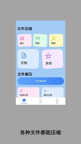 解压本地文件app是一款能够进行不同文件进行解压缩的应用软件,用户能够使用软件来各种格式的文件进行压缩和解压;并且软件支持对不同类型的文件进行压缩,包括图片、视频、文档、音频等文件,都可以使用软件来进行压缩,可以轻松缩减文件体积大小来释放手机空间,这样用户可以轻松压缩文件来达到释放手机空间的目的;此外还能够对不同的压缩包进行管理,支持用户自定义管理更多的文件,还能够一键分享不同的压缩包,方便用户快速转发文件进行分享;更有压缩记录可以帮助用户轻松找回需要的文件!