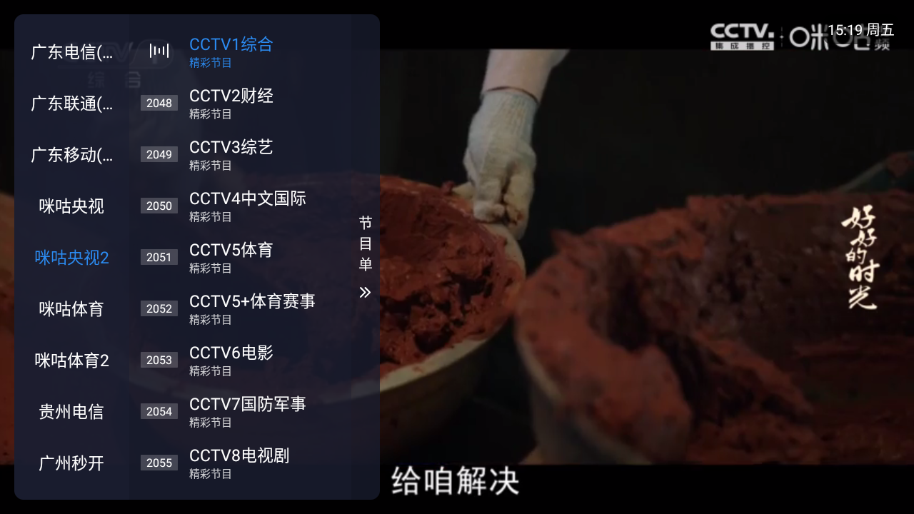 1、点击屏幕左侧会出现节目列表。