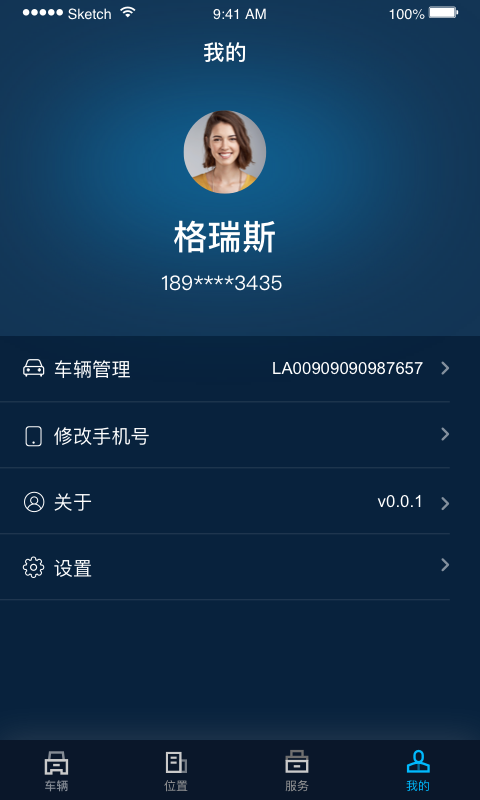 提供个人信息维护,含账号信息管理、车辆管理、修改手机号、软件版本号、重置安全码等功能