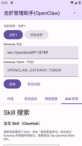 龙虾管理助手是一款围绕OpenClaw设备打造的本地控制应用,专注连接、调试与交互体验的打磨。通过稳定的本地通信能力,用户可以快速接入设备,进行实时操作与状态管理。应用内置对话交互功能,支持直接与设备进行智能沟通,同时提供细致的模型参数调节选项,方便进行个性化配置与测试。结合技能(Skill)搜索与快捷调用机制,能够在不同使用场景中灵活扩展功能。