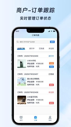 商户订单管理:商户可查看全量借用记录,支持精准查询快到期订单,方便及时提醒租客归还,提升设备流转效率;