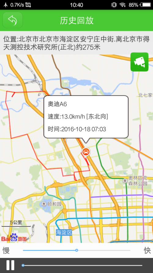 3、轨迹回放,在此可以找到车辆历史轨迹以及随时回放轨迹;