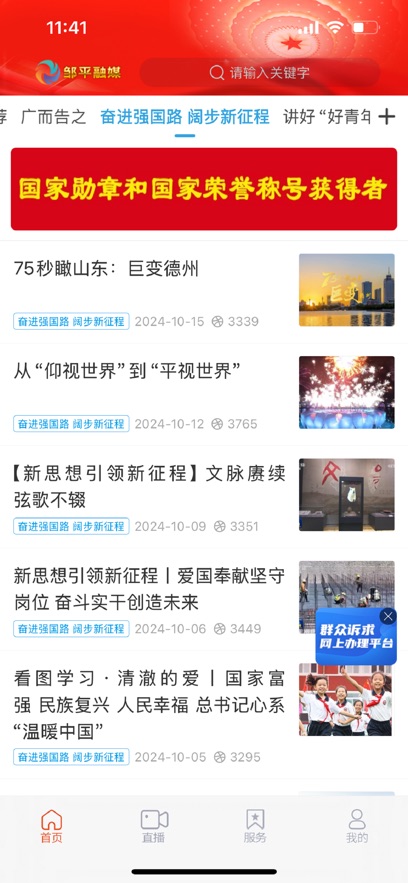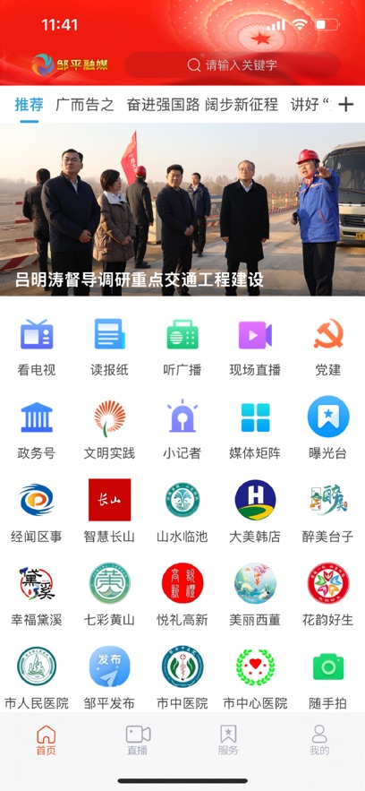 邹平融媒app是一款专为邹平当地居民打造的掌上新闻资讯平台,用户在邹平融媒app中能够轻松进行新闻资讯消息的查看,就能发现更多的热门事件信息,线上实时追踪事件的动态,让你准确把握事件的发展详情;线上还能享受到便捷的生活服务,为您的生活带来许多帮助和便利,在线可以处理许多相关事务,大大方便用户的生活,提高办事的效率,让用户的生活水平得到提升;有还在这里看电视、听广播、读报纸,本地新闻资讯第一时间为你发布推送,不会错过任何热门讯息,感兴趣的用户就来下载邹平融媒安卓版体验吧。