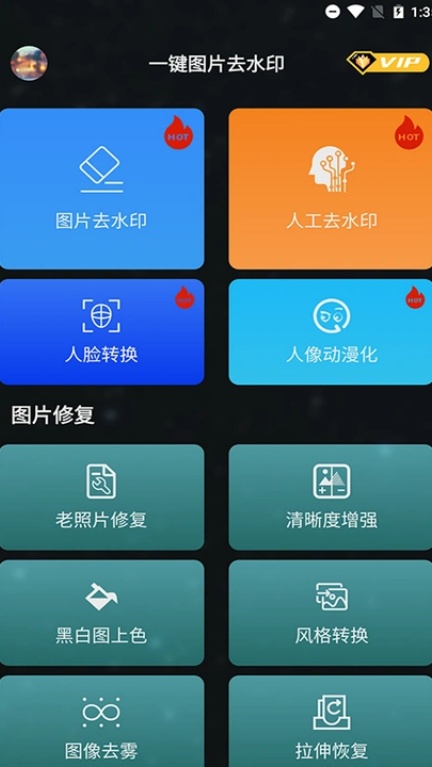 1、在首页中提供图片去水印、人工去水印、清晰度增强、懒人手写以及老照片修复的功能;