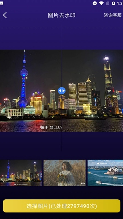 一键图片去水印app是一个功能齐全的图像处理软件,可以协助用户在手机上轻松实现图片的编辑,软件操作简便、方便,无需用户熟悉高超的PS技术,轻轻松松就可以在手机上进行美化图片,轻轻松松对图片进行编辑。