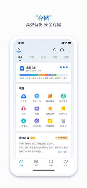 原先的115网盘客户端已更名为115生活,这里的115APP又名115网盘极速版,是个全新的产品,专注云存储功能,为用户提供安全,稳定,高效且智能的服务,用户可以在手机上体验一站式的数字生活,支持数据同步,文件随存快取,智能化的管理,趣味的空间等功能,更多好玩好用的内容等你来发掘。