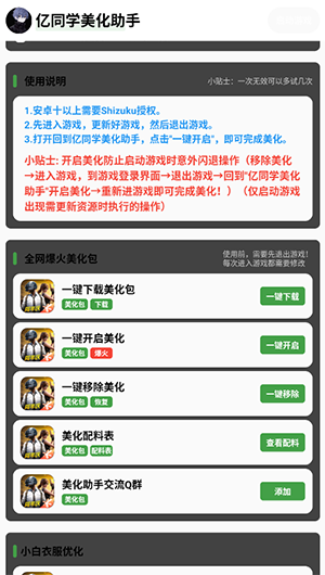 亿同学美化助手专为手游玩家打造的性能优化工具。通过智能调节分辨率、帧率、渲染质量等核心参数,帮助用户在不同设备上实现画质与流畅度的最佳平衡。软件支持主流游戏的一键画质增强,同时具备后台资源管理功能,可有效降低CPU与GPU负载,减少发热与耗电。