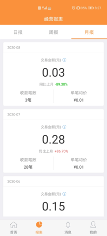 【账单】查询交易订单状态,多维度分析收款情况,每日营收一目了然,实时掌控自己的经营状况。