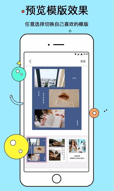 电子相册是一款简单的音乐相册制作工具,该应用支持音乐相册编辑、美图拼接、短片配字功能,随时都可记录生活中的小美好,这里拥有更多模板案例,实时浏览各种模板内容,这里的模板包括了时尚潮流、亲子家庭、婚礼爱情、商业宣传等模板案例,一键点击使用即可选择模板。