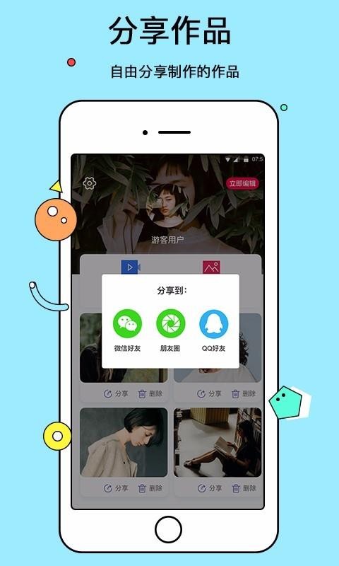2、一键分享就能快速将作品分享给身边的人,分享电子相册;