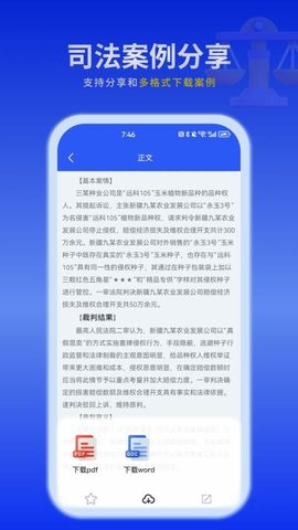 可以对各种司法案例和法律法规进行快速分享,以便用户在其他平台使用案例;
