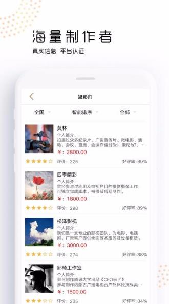 3、海量制作者信息,可根据自己的制作需求,在线找到合适的人;