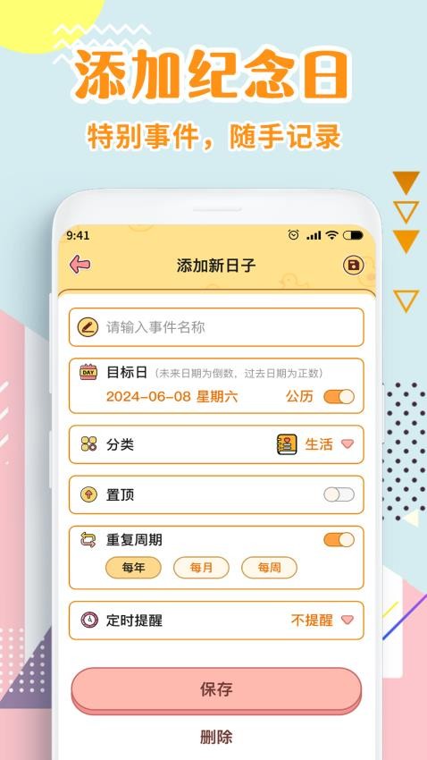 正数、倒数计算结婚周年纪念日、生日、恋爱日、高考、假期、重要事项,不再错过值得纪念的日子。