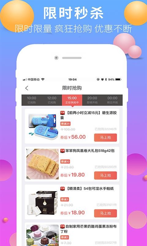 2、限时秒杀,限时限量、疯狂抢购、优惠不断;