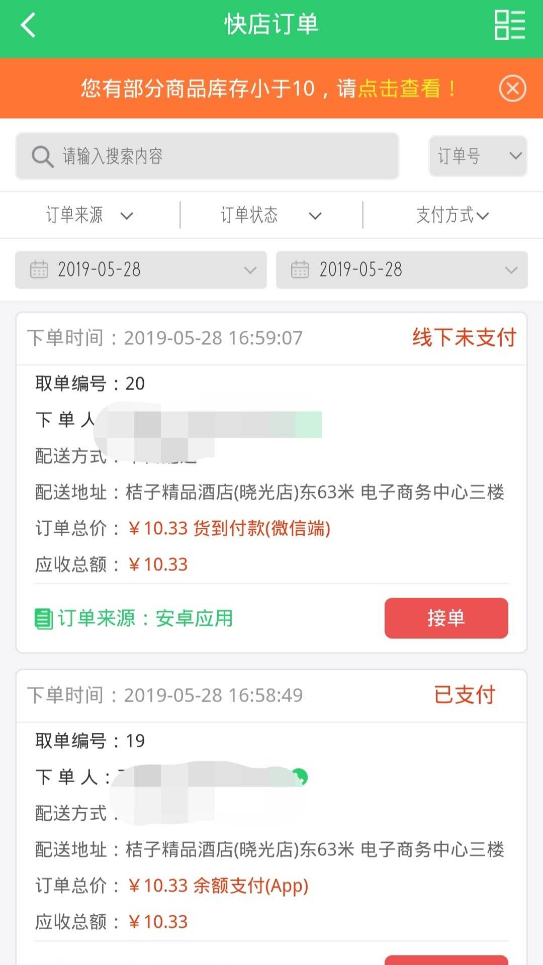 6、外卖管理,随时可以开通外卖接单入口以及及时处理外卖订单;